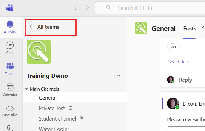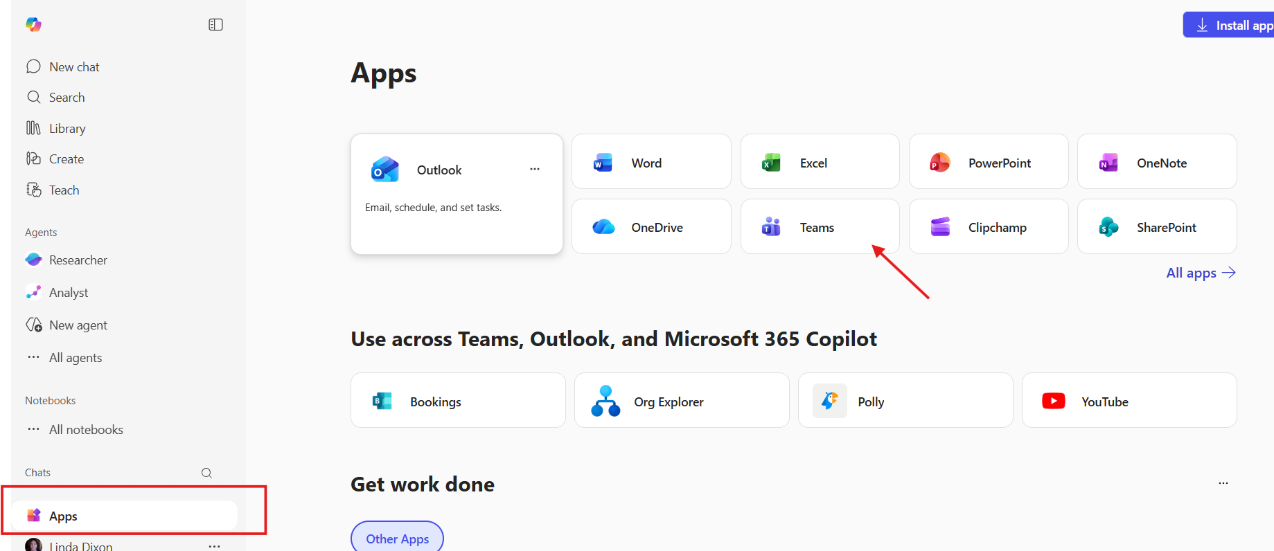 - If the icon isn't visible, use the search feature in the left panel and type Teams.