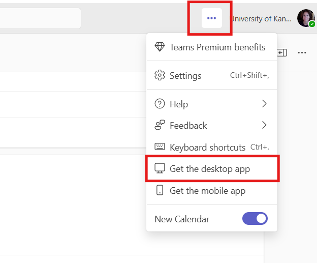 - Go to Settings icon [3 dot icon next to University of Kansas and profile image at the top right of interface.