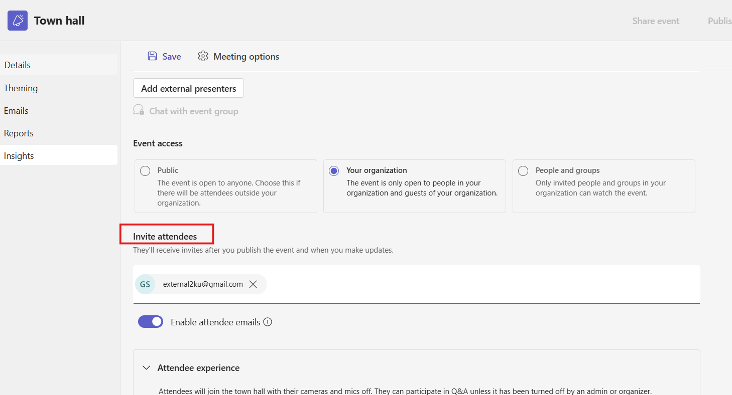 Save and publish. If you listed people in the Invite attendees field, they will receive an email with join link automatically.